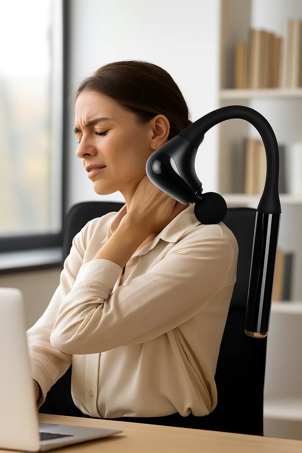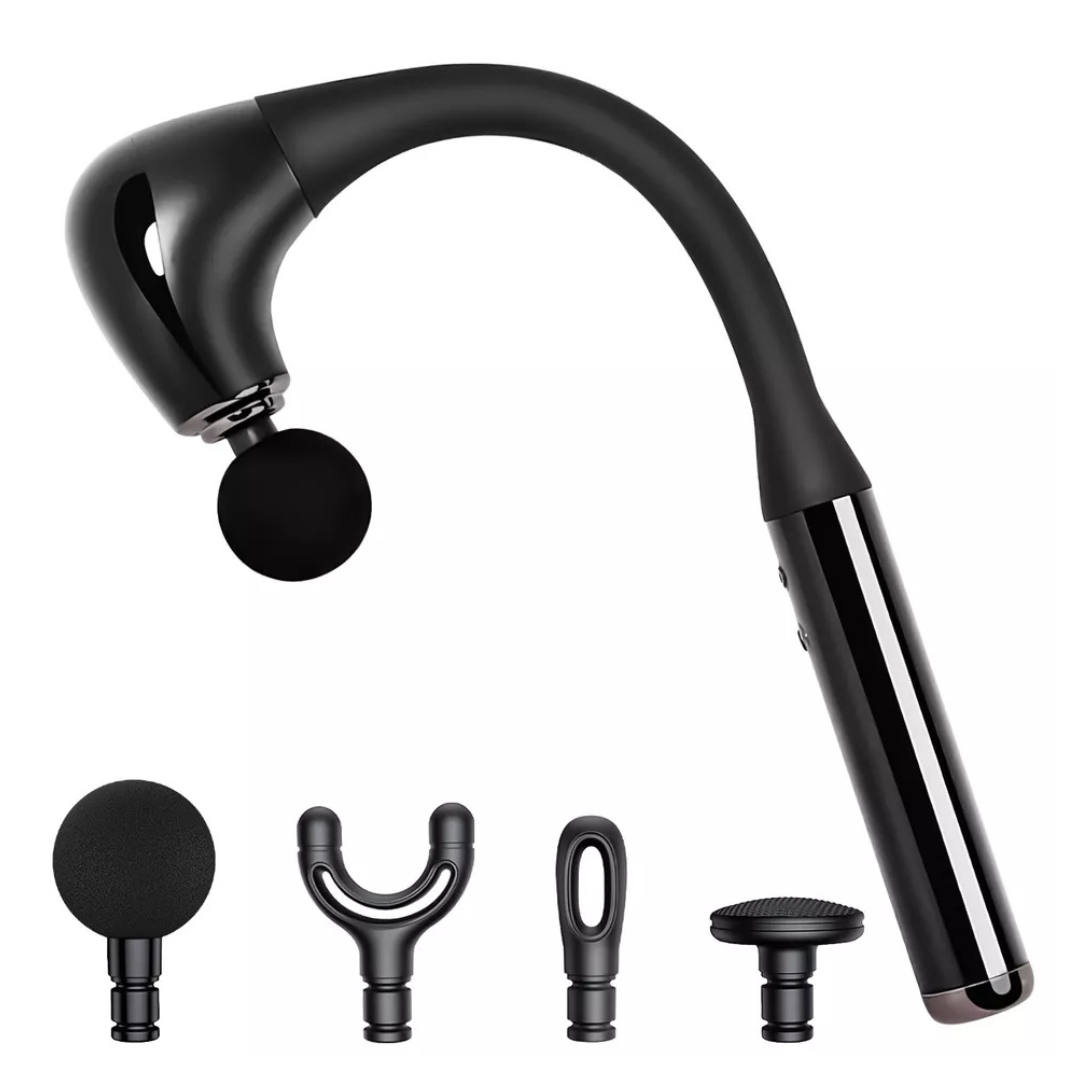 Sumérgete en una experiencia de relajación y alivio del dolor con nuestra Pistola Masajeadora Curva. Diseñada para ofrecer un masaje profundo, esta pistola portátil como silenciosa es tu aliada perfecta para recuperarte rápidamente para mejorar tu bienestar general, siendo larga con una curvatura para poder dar un masaje en cualquier parte de tu cuerpo..
